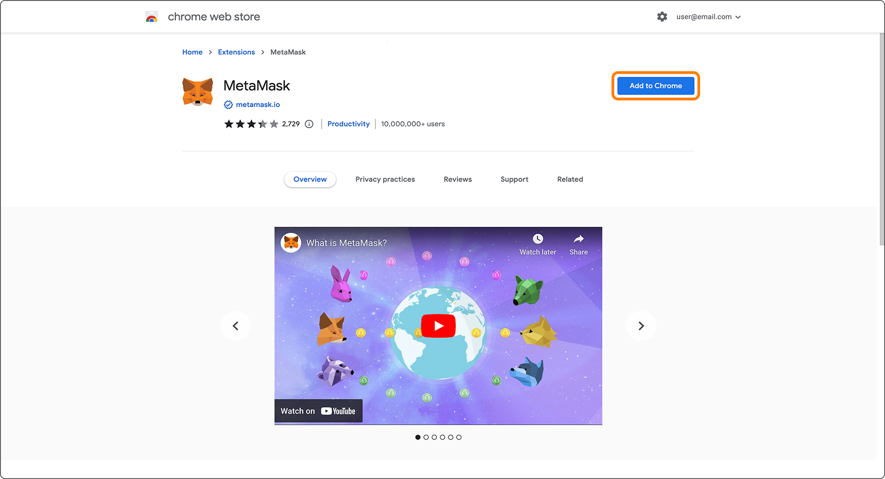 3. Click Install MetaMask for Chrome. You will be directed to the Chrome Web Store;