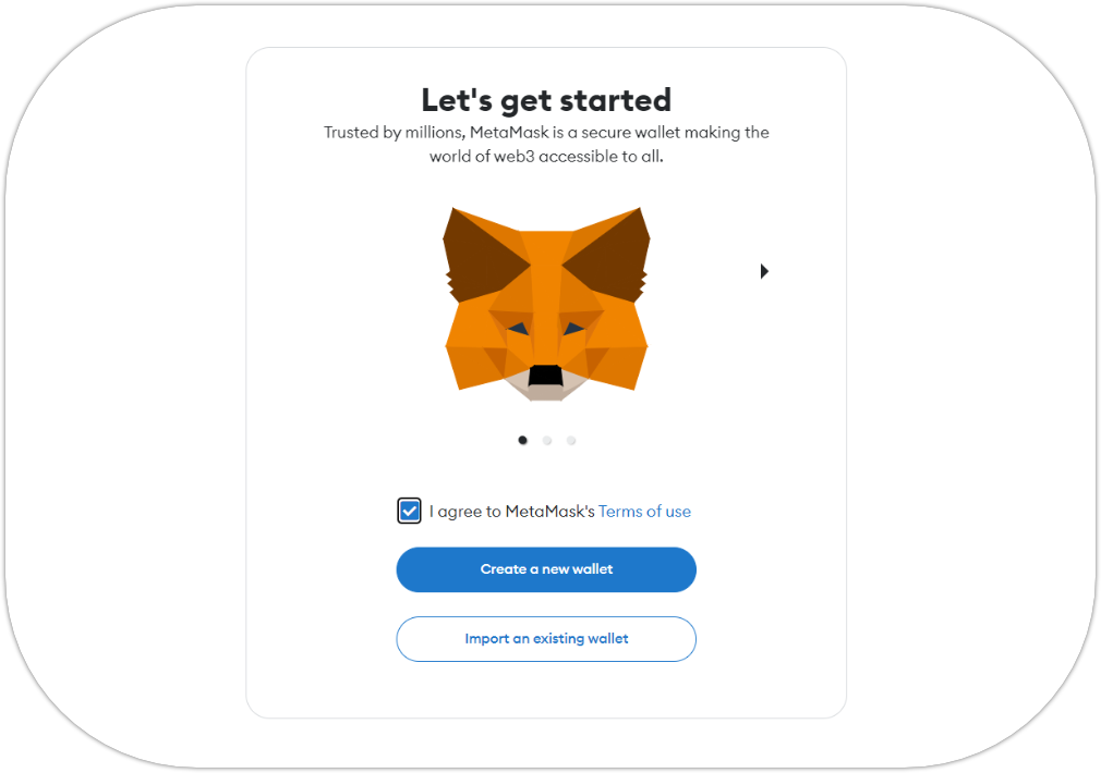 Once the browser extension download is completed, you will be taken to a MetaMask wallet setup page.