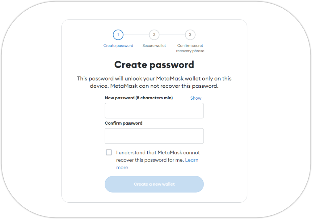2. You will have to create a password for your MetaMask wallet;
