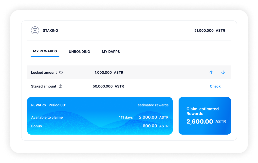 - Stake (↓): Stake your locked tokens in dApp Staking;