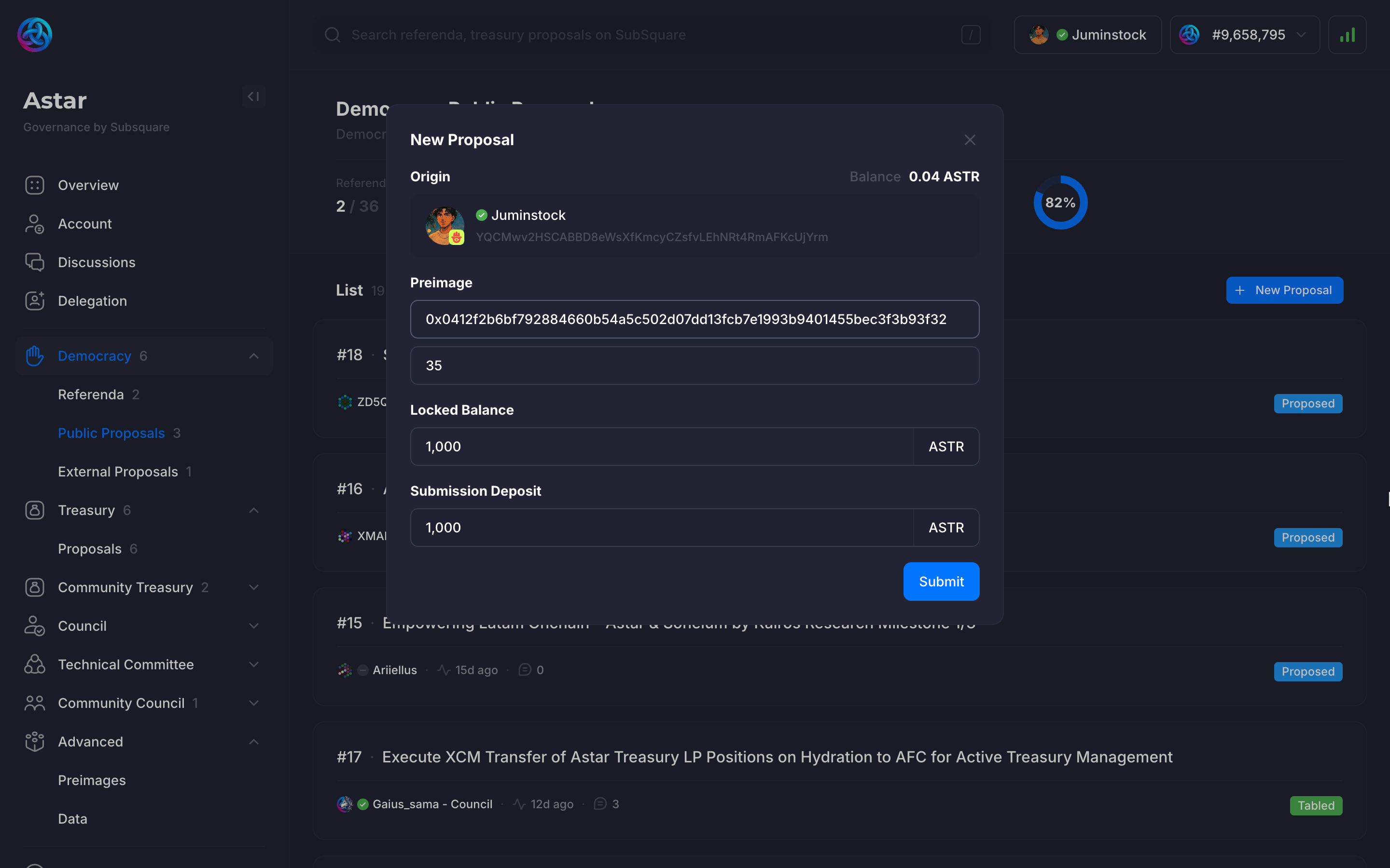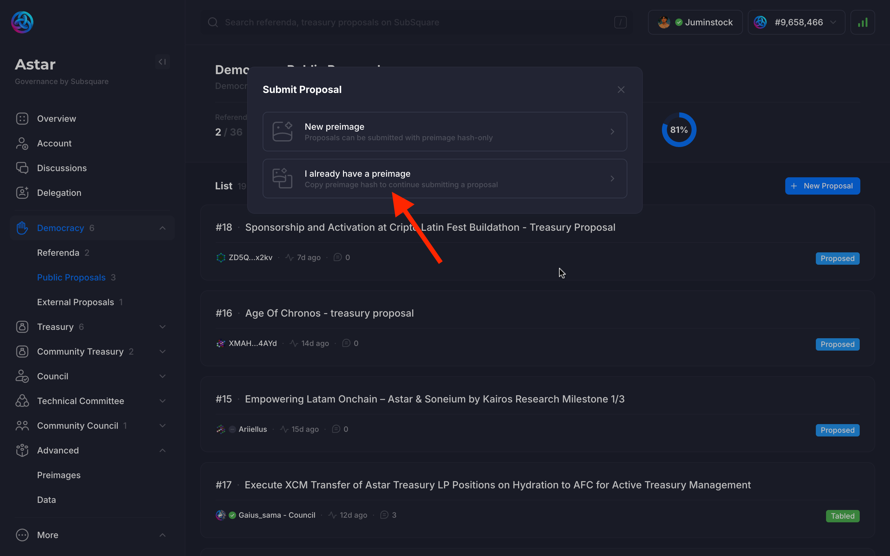 That’s it! With this preimage, you’ll be able to create a Public Proposal and allow any ASTR holder to vote on the treasury spending proposal you have selected. You can follow the steps below.