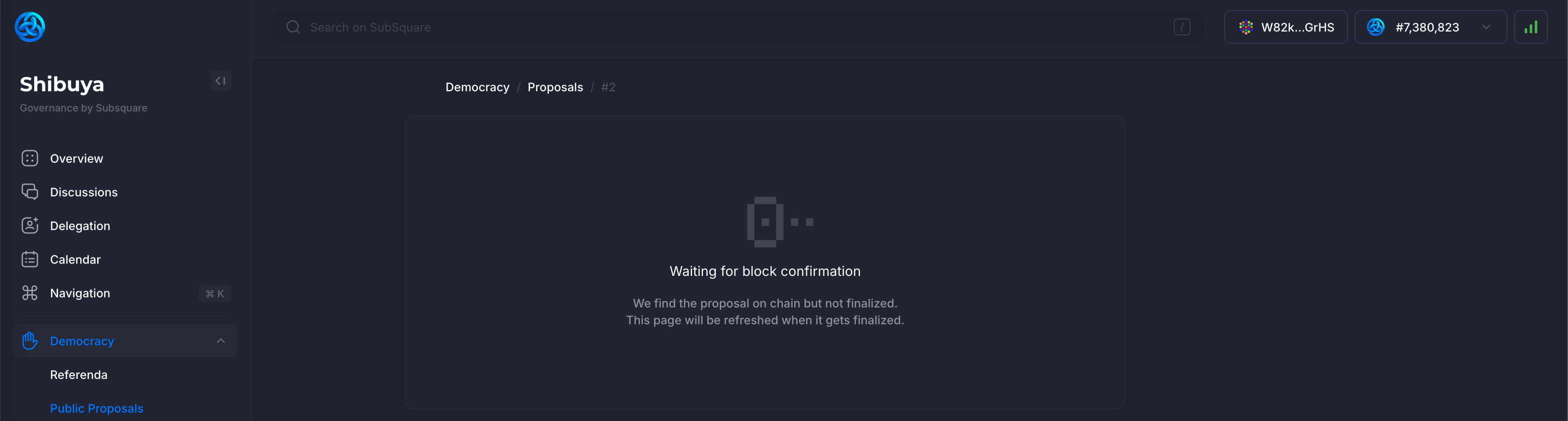 After submitting the proposal, some time needs to pass before the transaction is confirmed and finalized.
