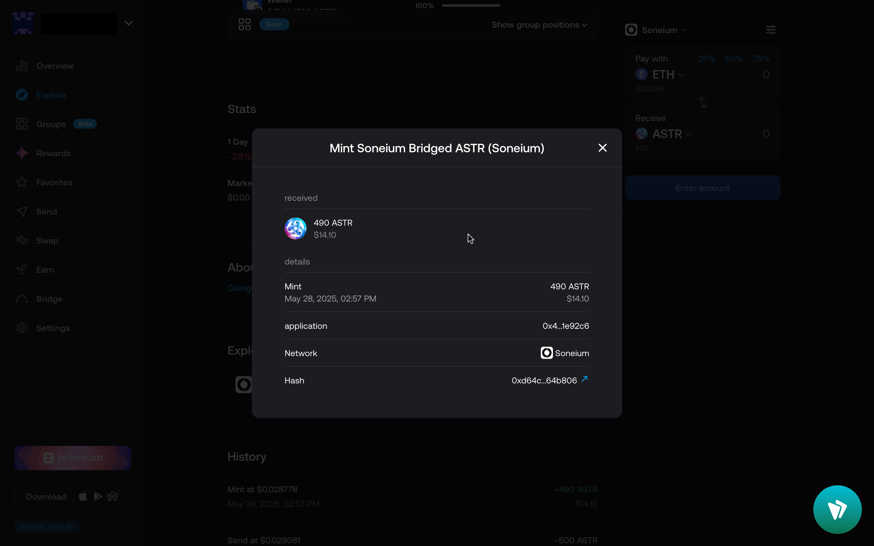 Finally, you can go to the Soneium block explorer or check the transaction details in your wallet, either way, you’ll be able to verify that your ASTR tokens have arrived on the Soneium network within minutes.