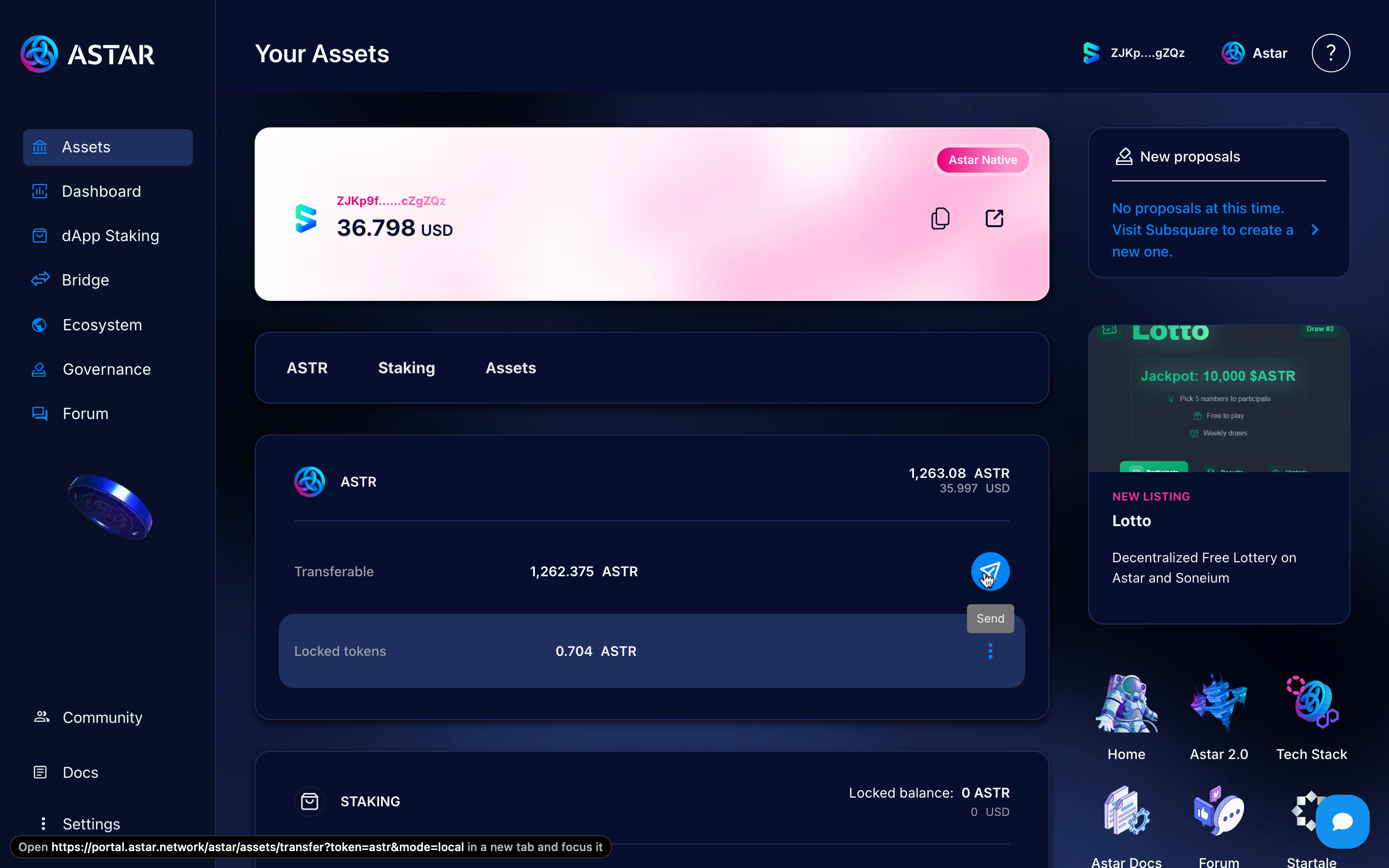 Go to our Astar Portal, the site where you can manage your funds and accounts within Astar Network.