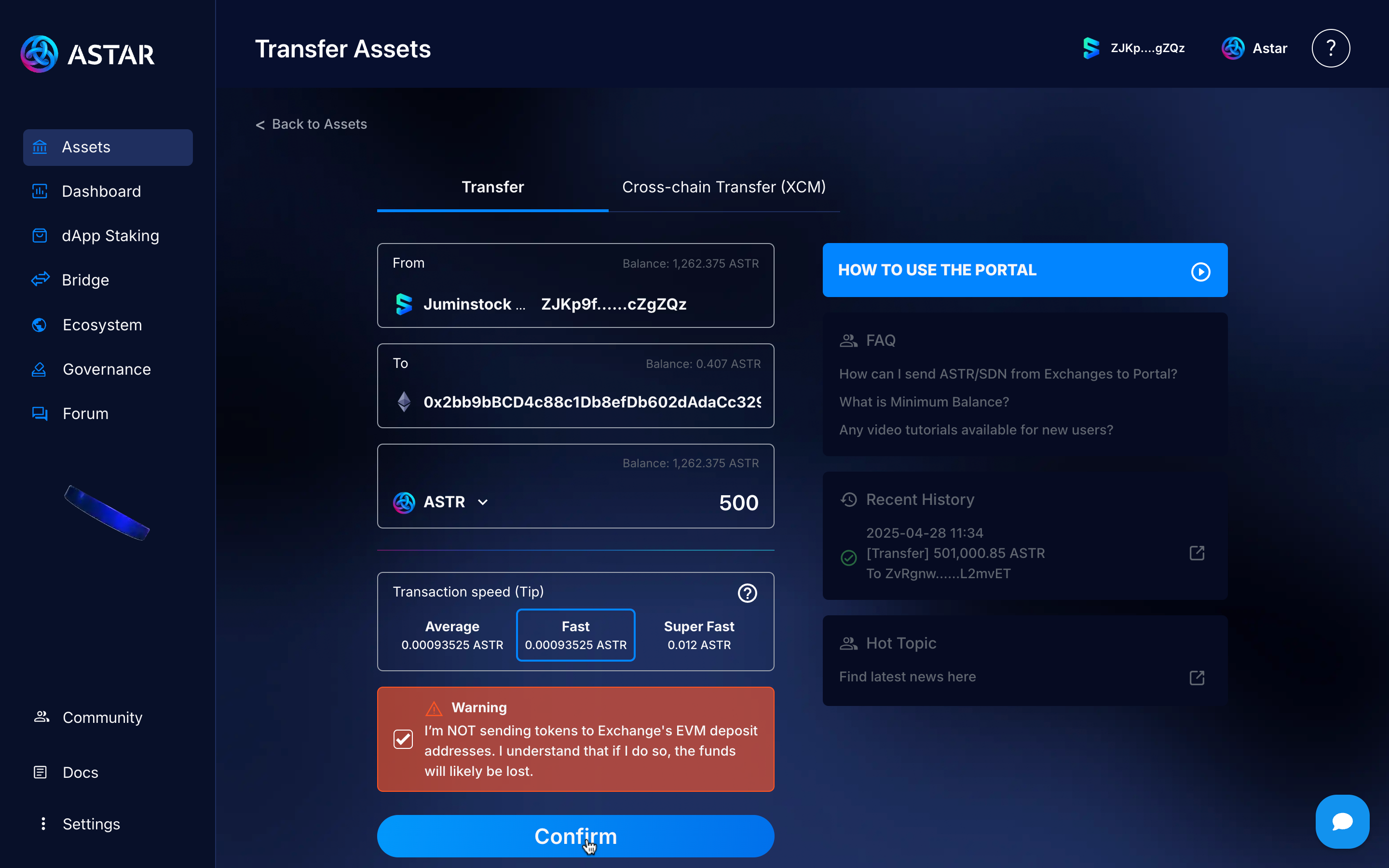 Step 4: Send ASTR to EVM
