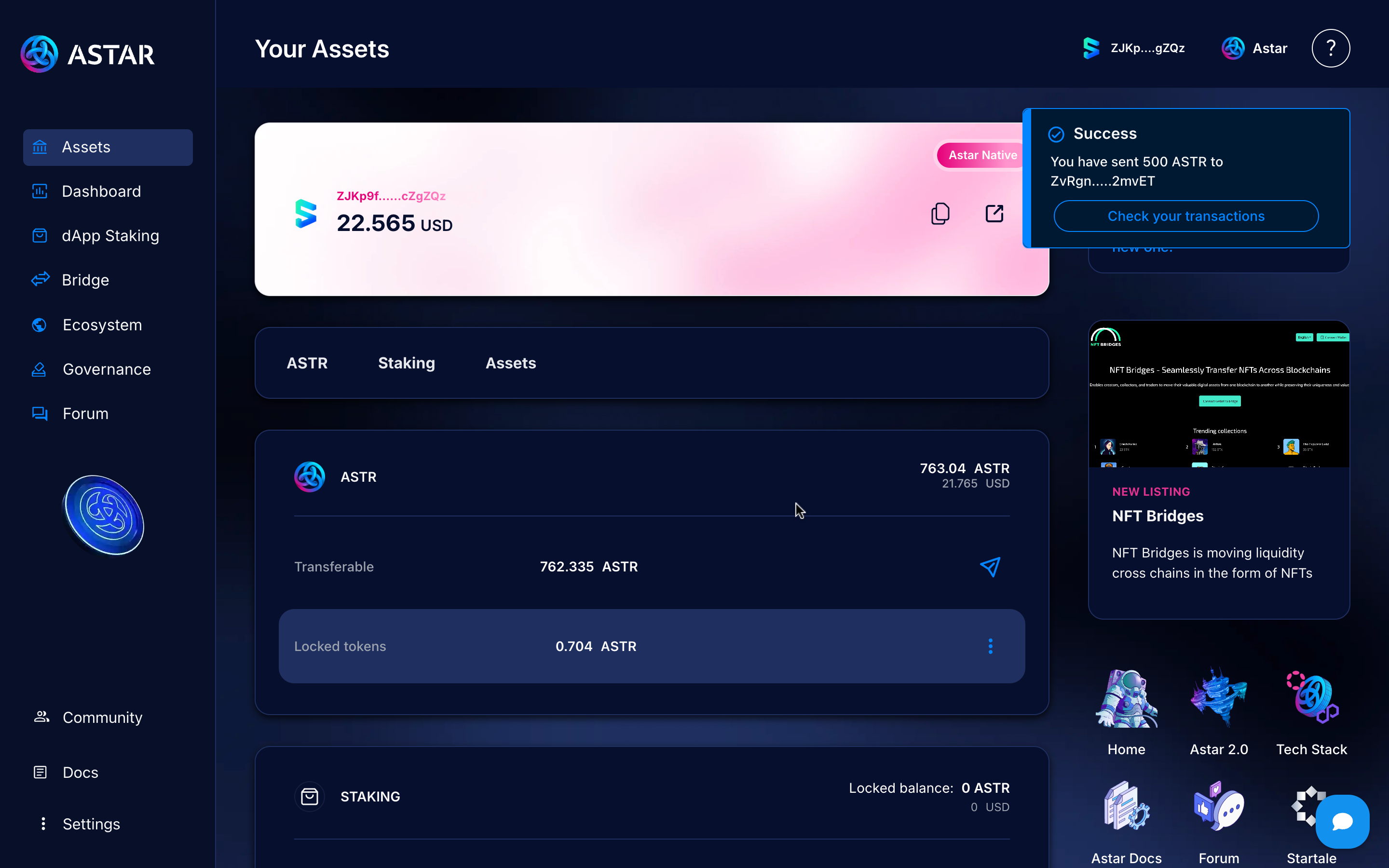 Congratulations! You’ve successfully sent tokens from Astar Substrate (L1) to Soneium quickly and easily.